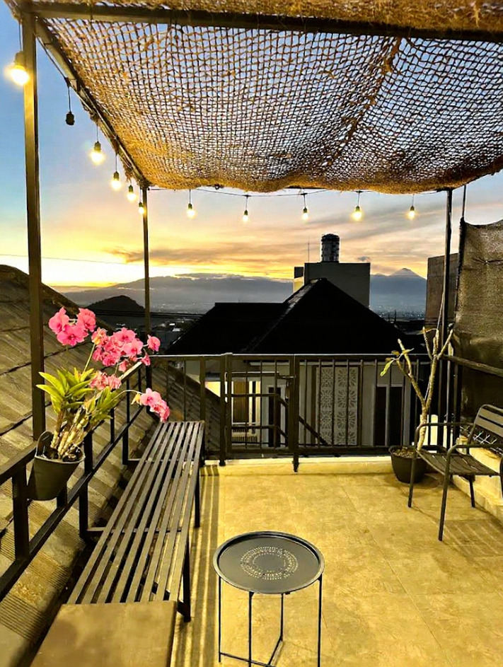 - Rooftop estetik dengan lampu gantung (spot foto & santai)