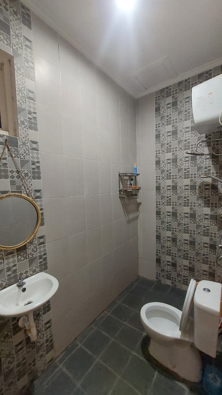 Fasilitas meliputi WiFi gratis, TV layar datar, dapur lengkap, balkon, rooftop, ruang tamu, parkir pribadi, serta kamar mandi dengan shower.