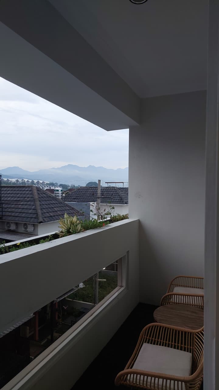 Dari balkon dan area outdoor, Anda dapat menikmati pemandangan pegunungan khas Batu yang menenangkan, cocok untuk melepas penat dari aktivitas sehari-hari.