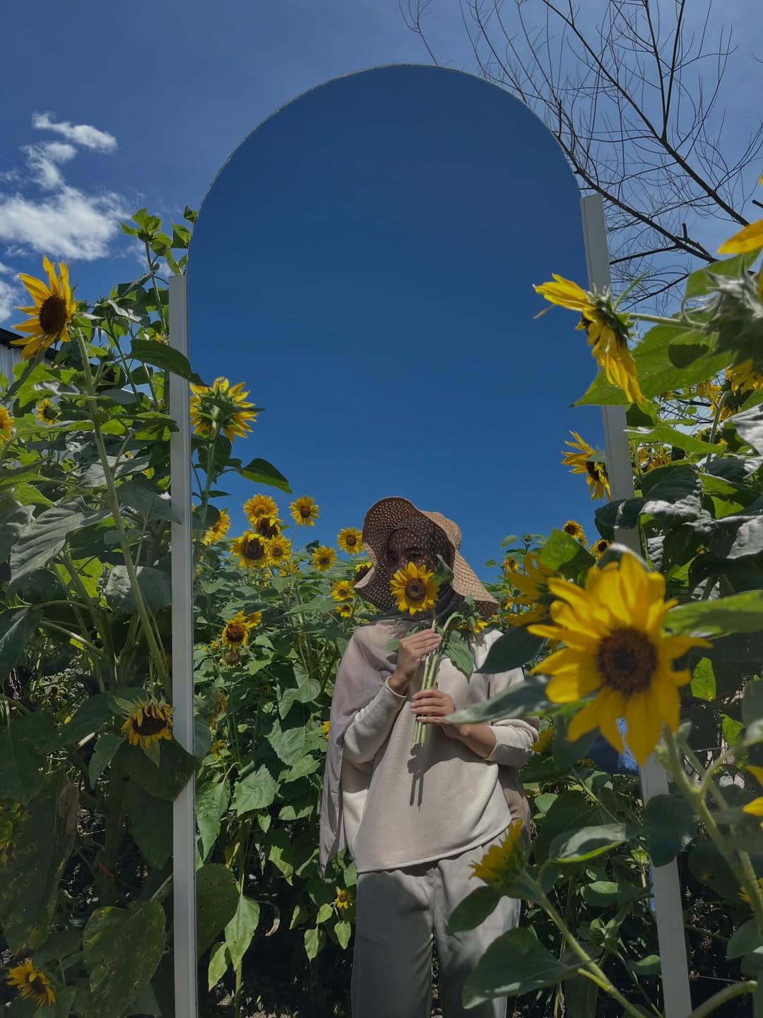 Dikelilingi bunga matahari yang tinggi dan instagramable, kamu bisa eksplor berbagai spot foto unik seperti mirror selfie di tengah ladang, pose natural di antara bunga, hingga candid aesthetic seperti di foto-foto viral β¨
