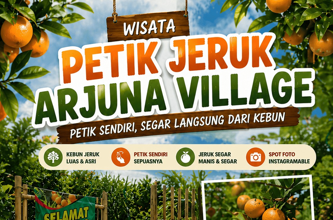 Nikmati pengalaman wisata alam yang segar dan menyenangkan di Petik Jeruk Arjuna Village πΏπ. Berlokasi di area sejuk dengan latar belakang Gunung Arjuno, tempat ini menawarkan sensasi memetik jeruk langsung dari pohonnya di tengah kebun yang luas dan asri.